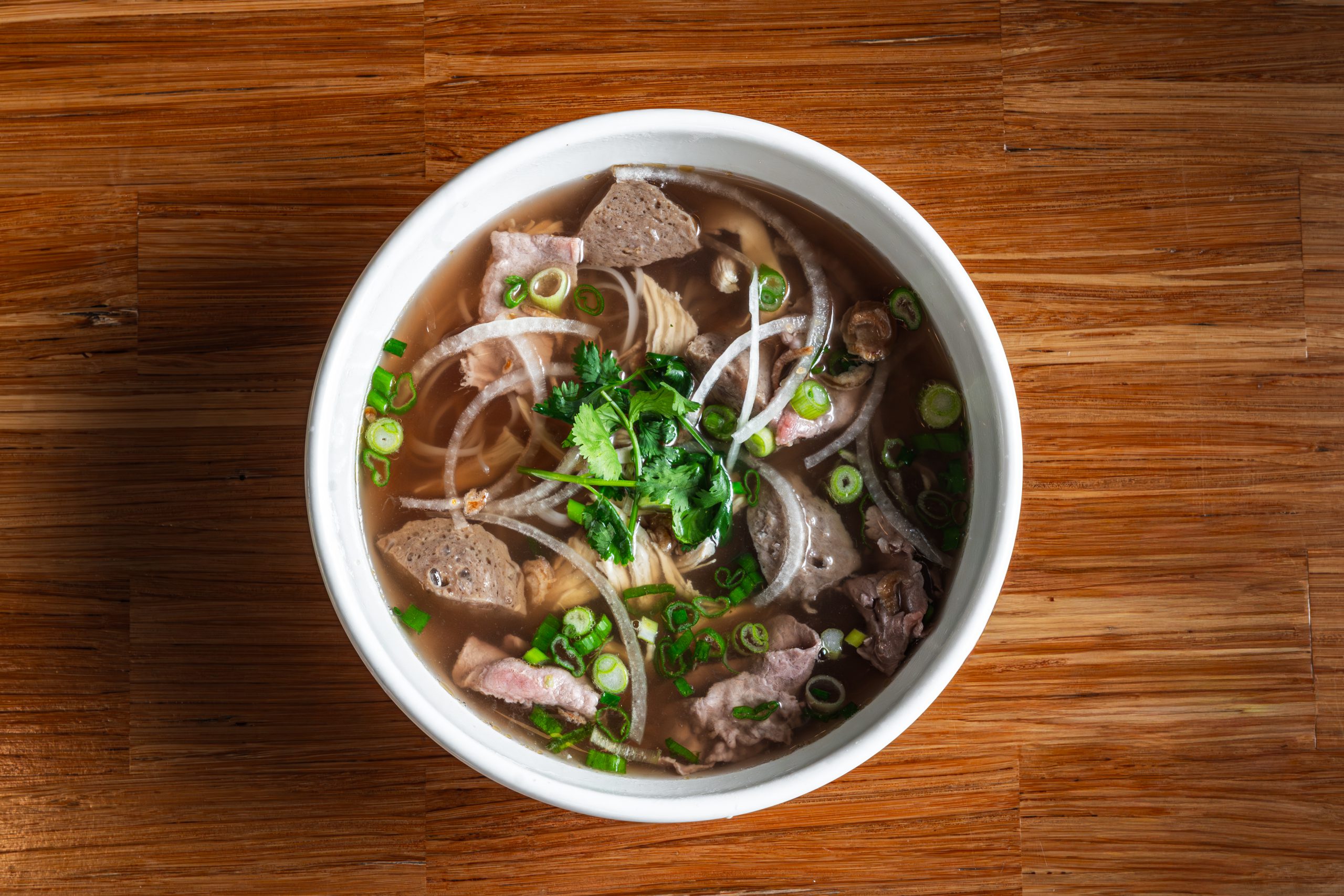 Vietnamese noodle soup served with your choice of two (2) proteins, white onions, scallions, cilantro and your choice of herbs from our Herb Bar.